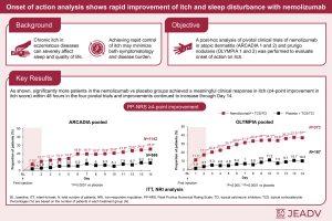 Clinical trial data show nemolizumab eases itch and improves sleep within days for people with severe eczema and prurigo nodularis (Figure 1).