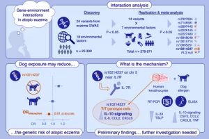 A new study has revealed insights into how a child’s environment interacts with their genes to influence the risk of developing atopic eczema – a chronic skin condition marked by dryness, itching, and inflammation (Figure 1). While genetics are known to play a key role, researchers have now shown that early-life exposures, including pet ownership, may alter how these genetic risks manifest.