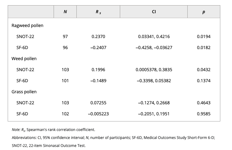Journal article: Benton Tullis et al, 2025. Pollen Exposure and Chronic Rhinosinusitis Quality of Life Disease Severity. Laryngoscope Investigative Otolaryngology.